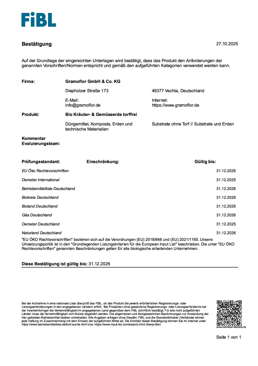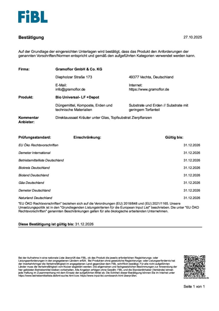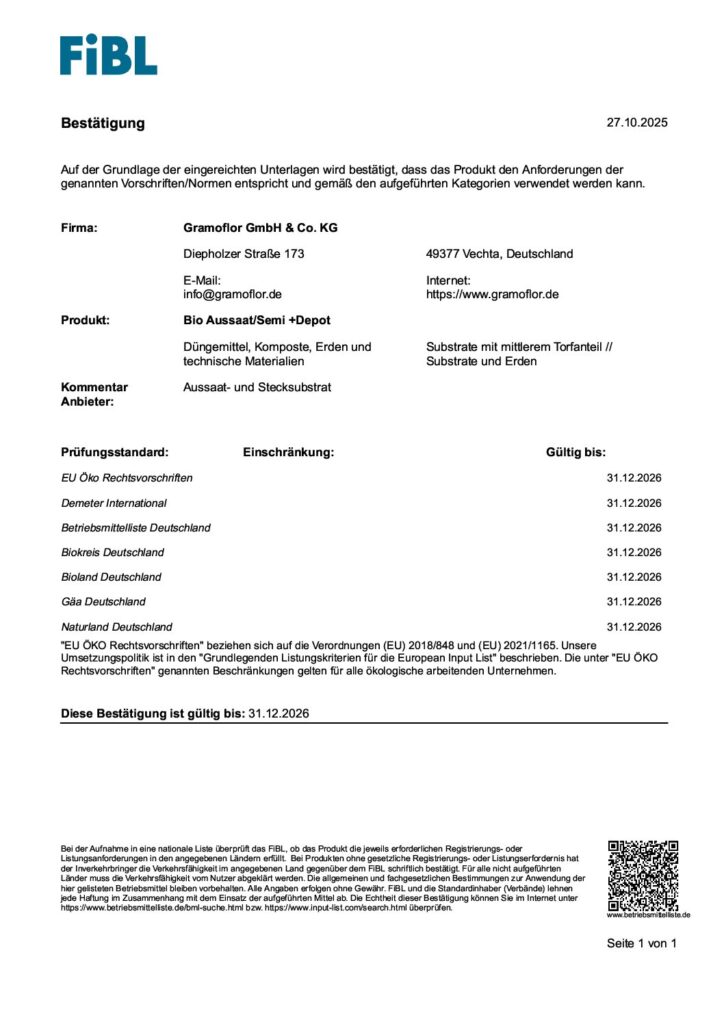 FiBL – Bio Kraueter Gemüseerde torffrei