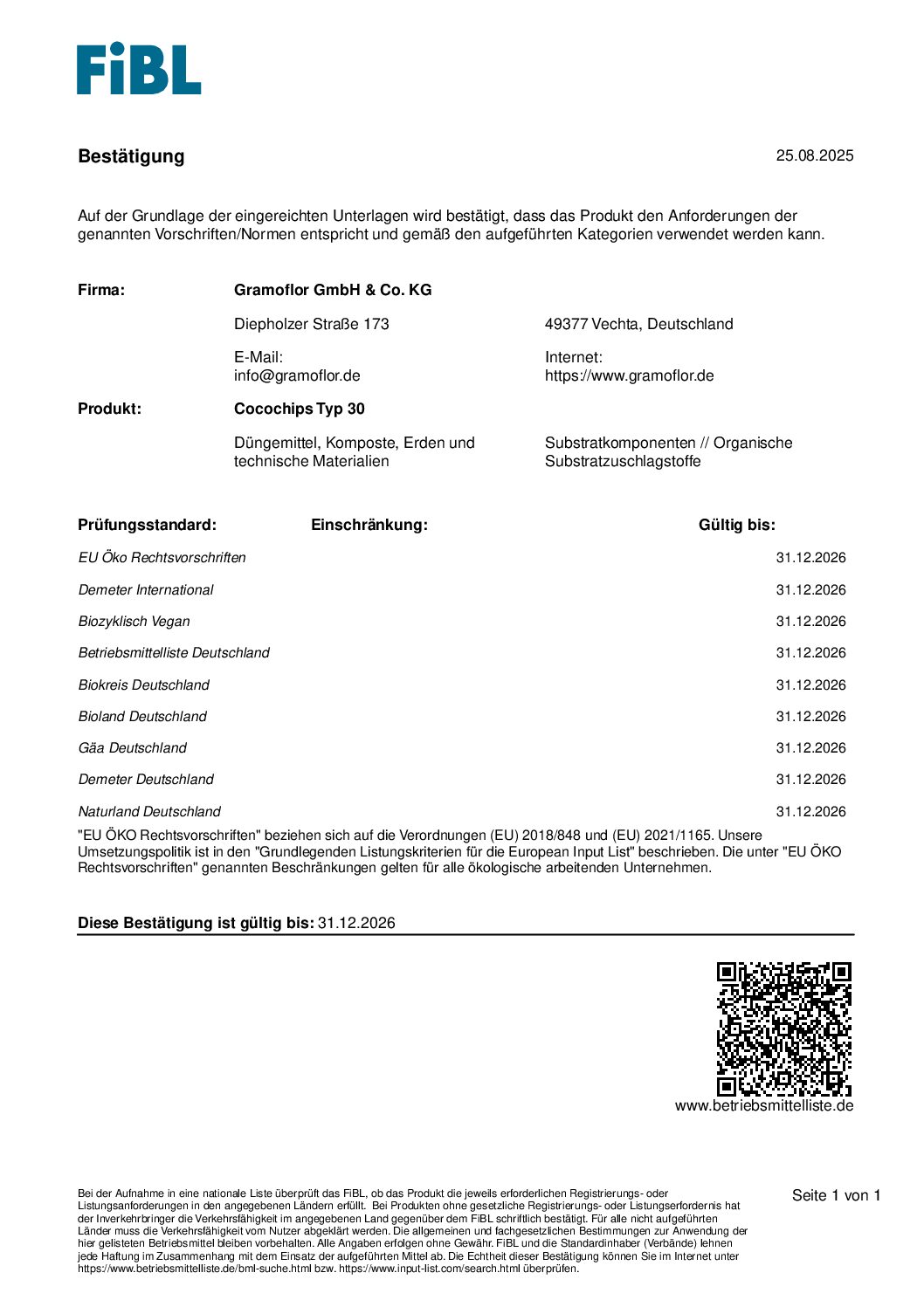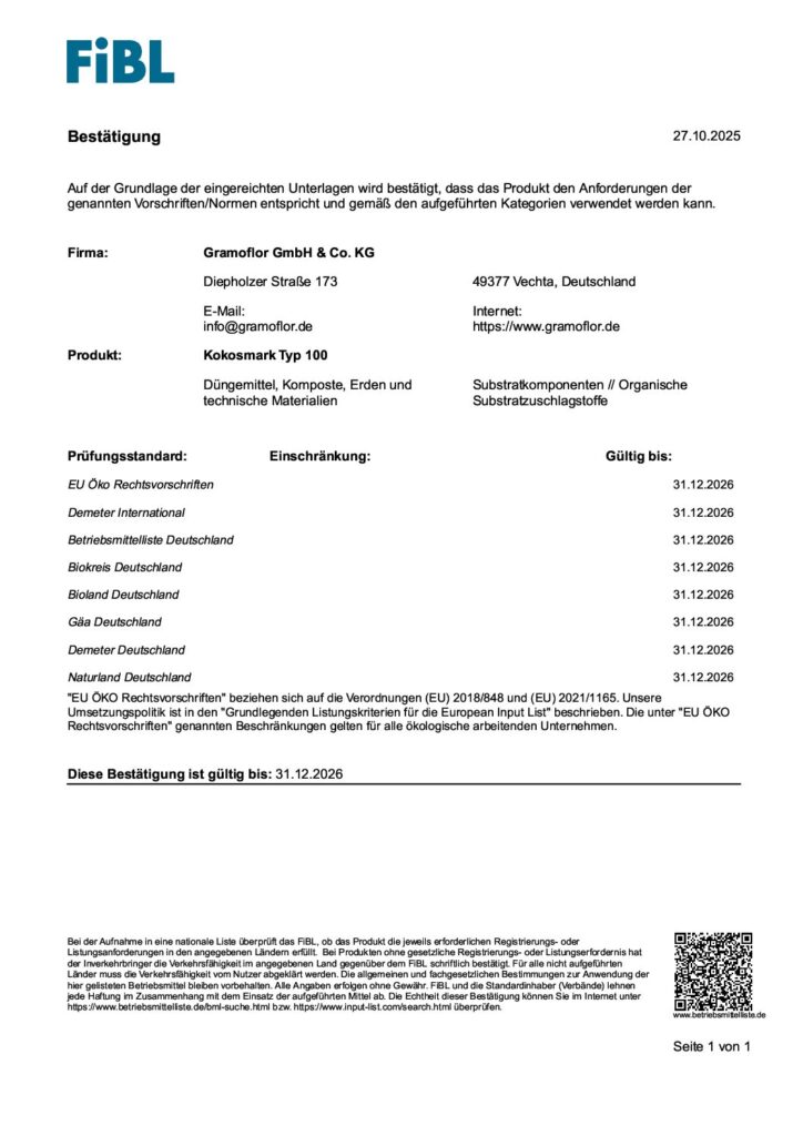 FiBL – Cocopeat Typ 60